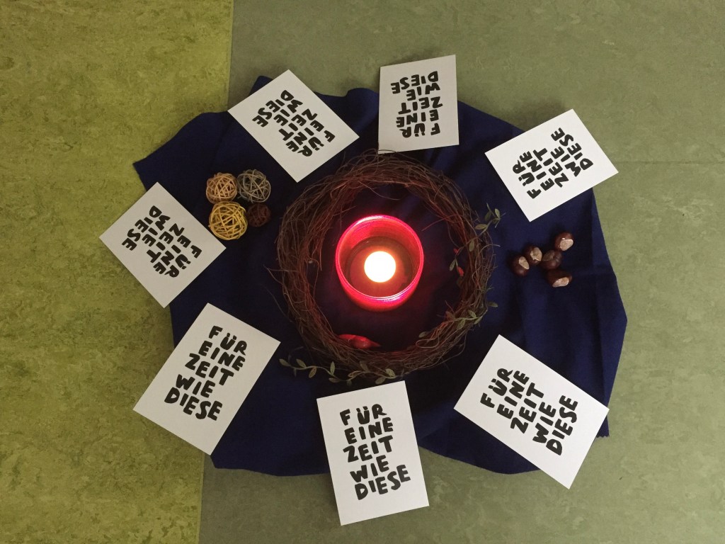 Am Ende nahmen wir jede eine Karte mit der Aufschrift „Für eine Zeit wie diese“ in Empfang, um darauf in Ruhe und für uns ganz persönlich einmal aufzuschreiben, was uns bewegt.